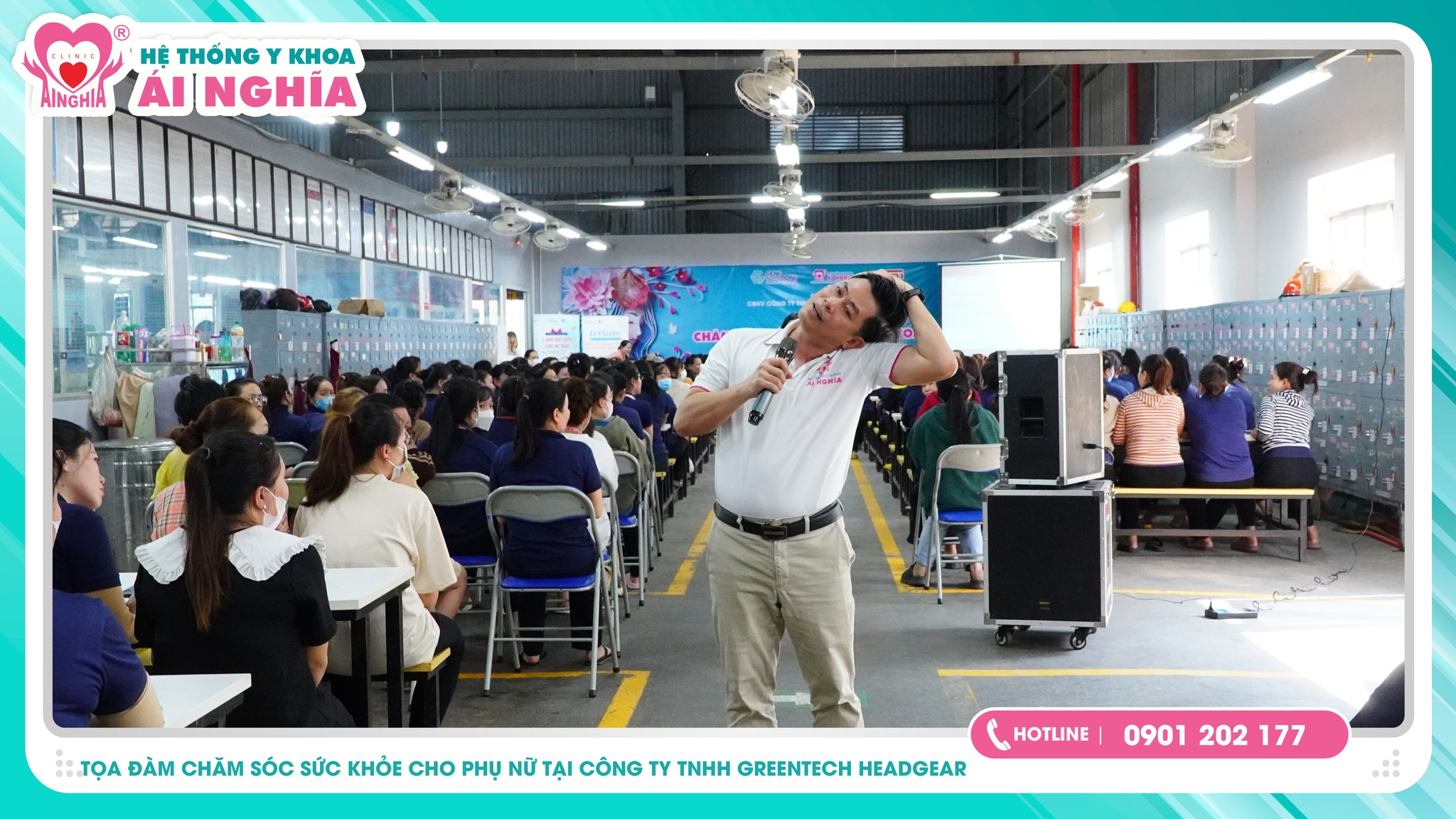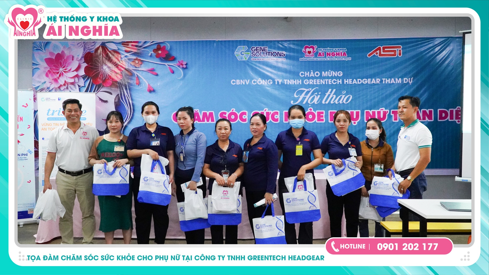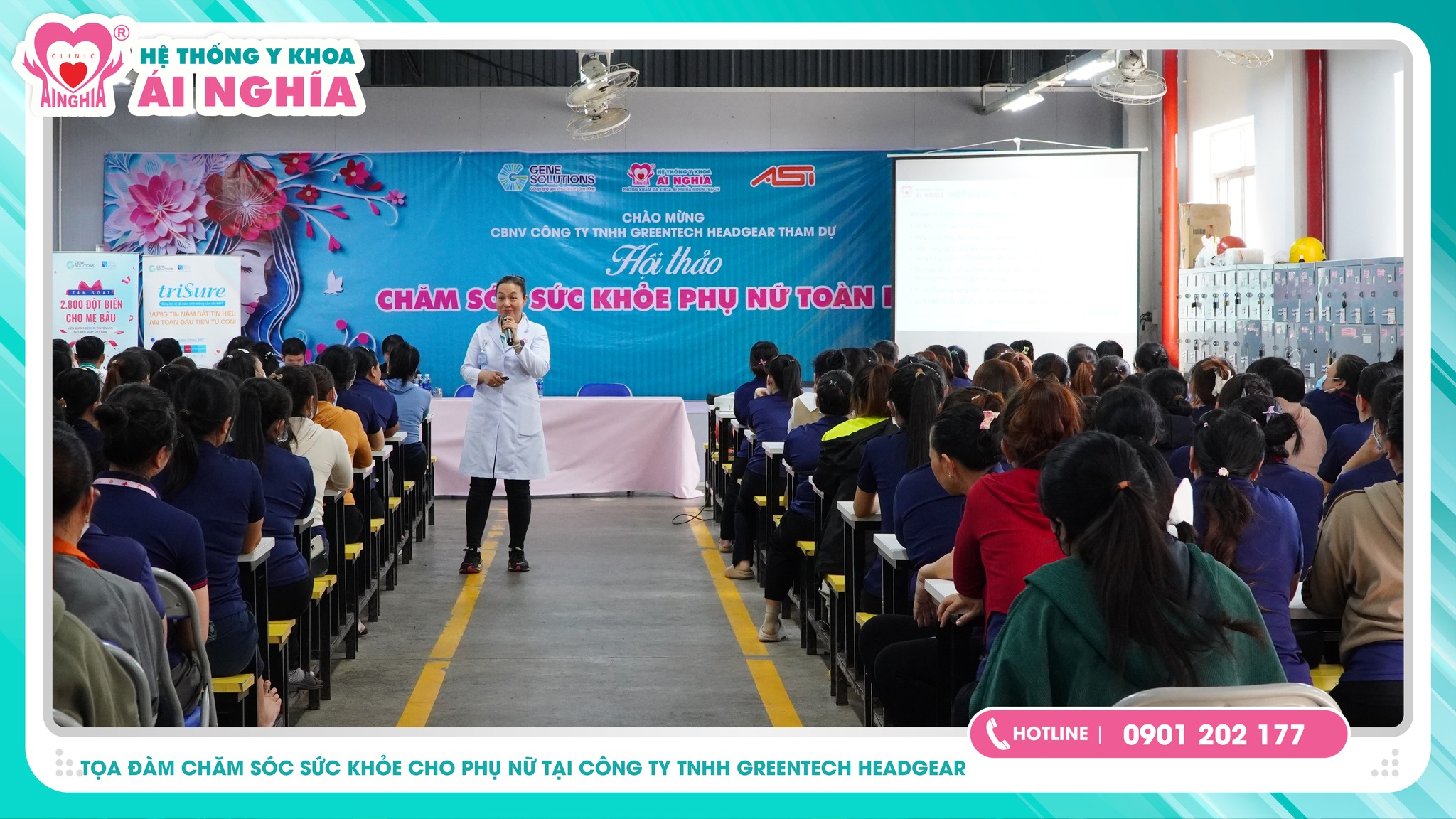 Nằm trong chuỗi hoạt động Chăm Sóc Sức khỏe Cộng Đồng - Hệ thống Y khoa Ái Nghĩa cùng Công ty Gen Solutions rất vui mừng khi tổ chức thành công buổi tọa đàm chăm sóc sức khỏe cho hơn 500 chị em Phụ Nữ là Cán bộ công nhân viên tại Công ty TNHH Greentech Headgear vào trưa ngày 14/11/2024.
