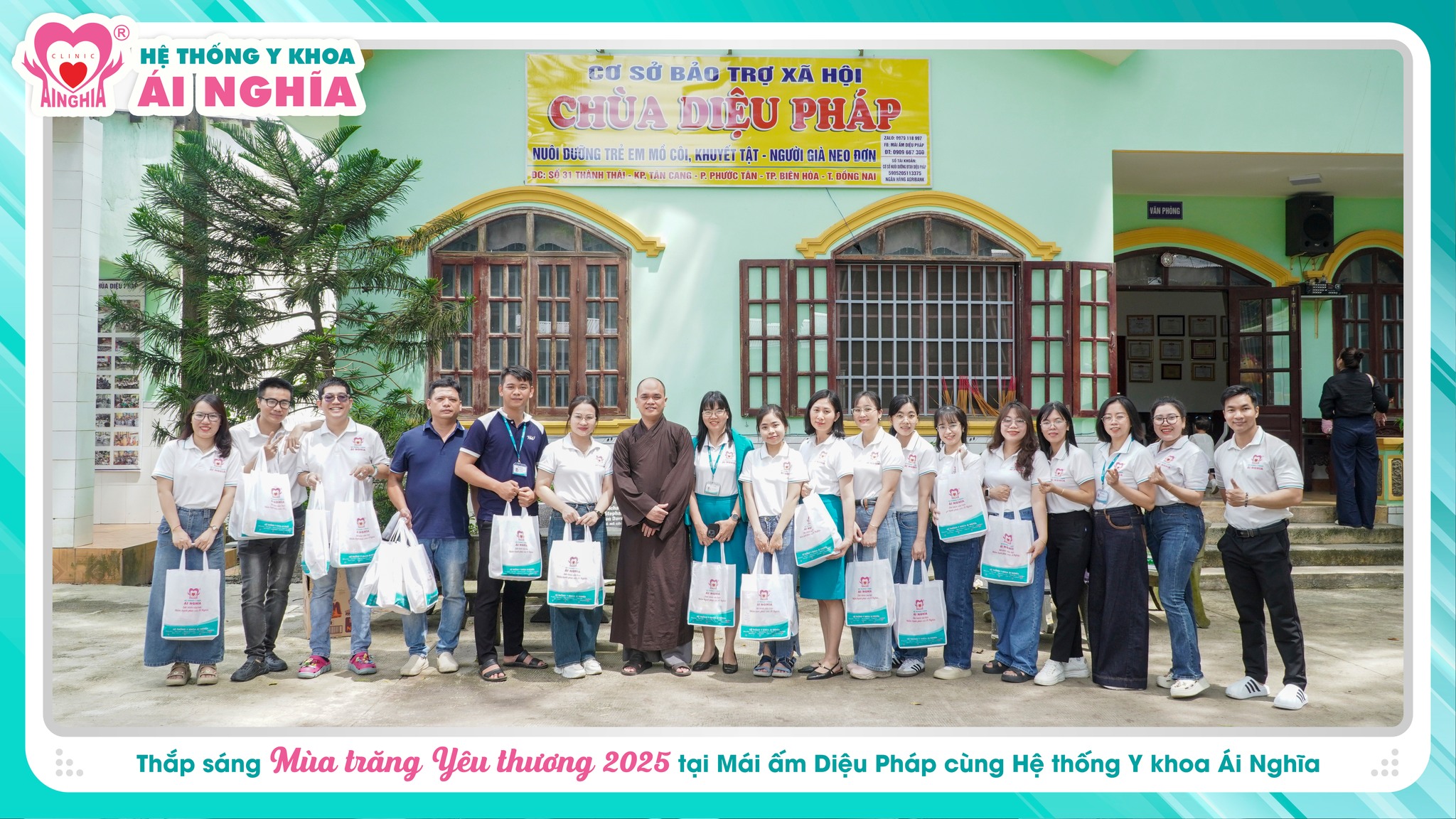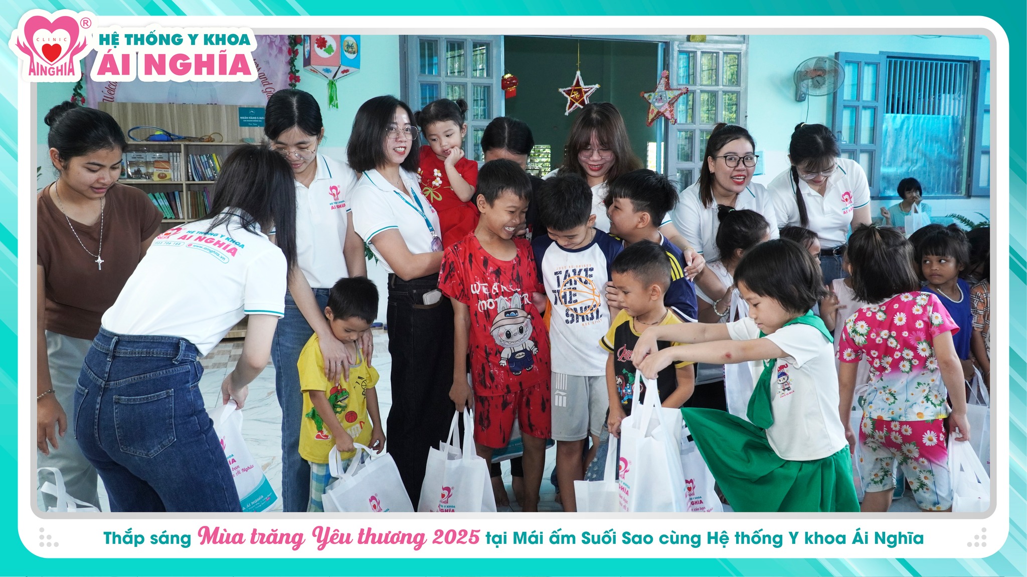 Trong không khí rộn ràng và ấm áp ấy, Hệ thống Y khoa Ái Nghĩa đã cùng nhau mang niềm vui Trung Thu đến với Mái ấm Suối Sao và Mái ấm Diệu Pháp thông qua chương trình “Trao quà Trung Thu” – một hành trình nhỏ nhưng chứa đựng thật nhiều yêu thương và ý nghĩa.
