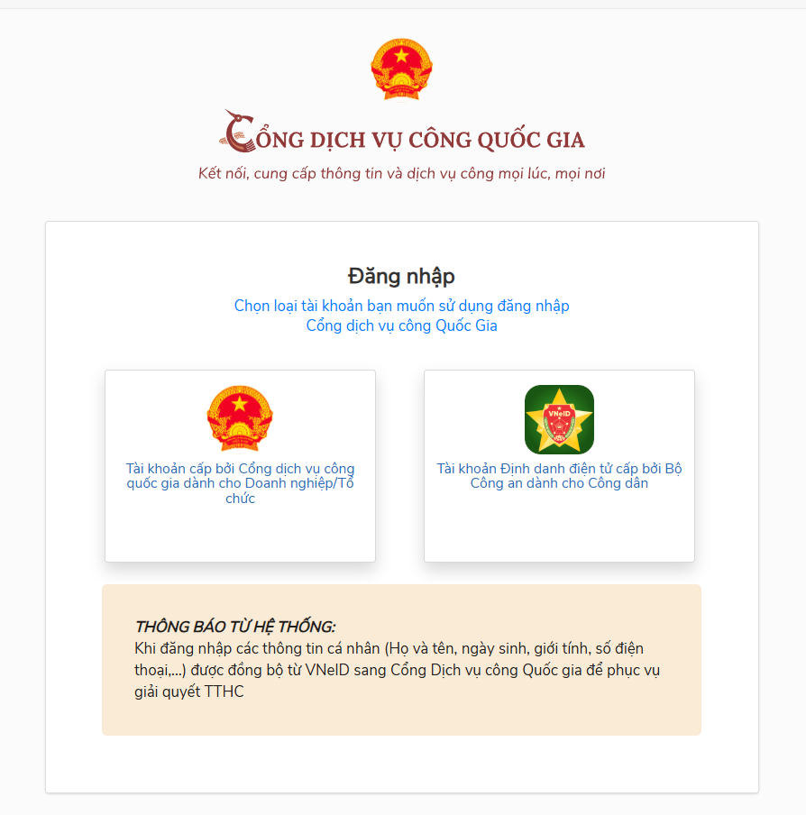 Cá nhân chọn đăng nhập bằng tài khoản định danh điện tử cấp bởi Bộ Công an dành cho Công dân.