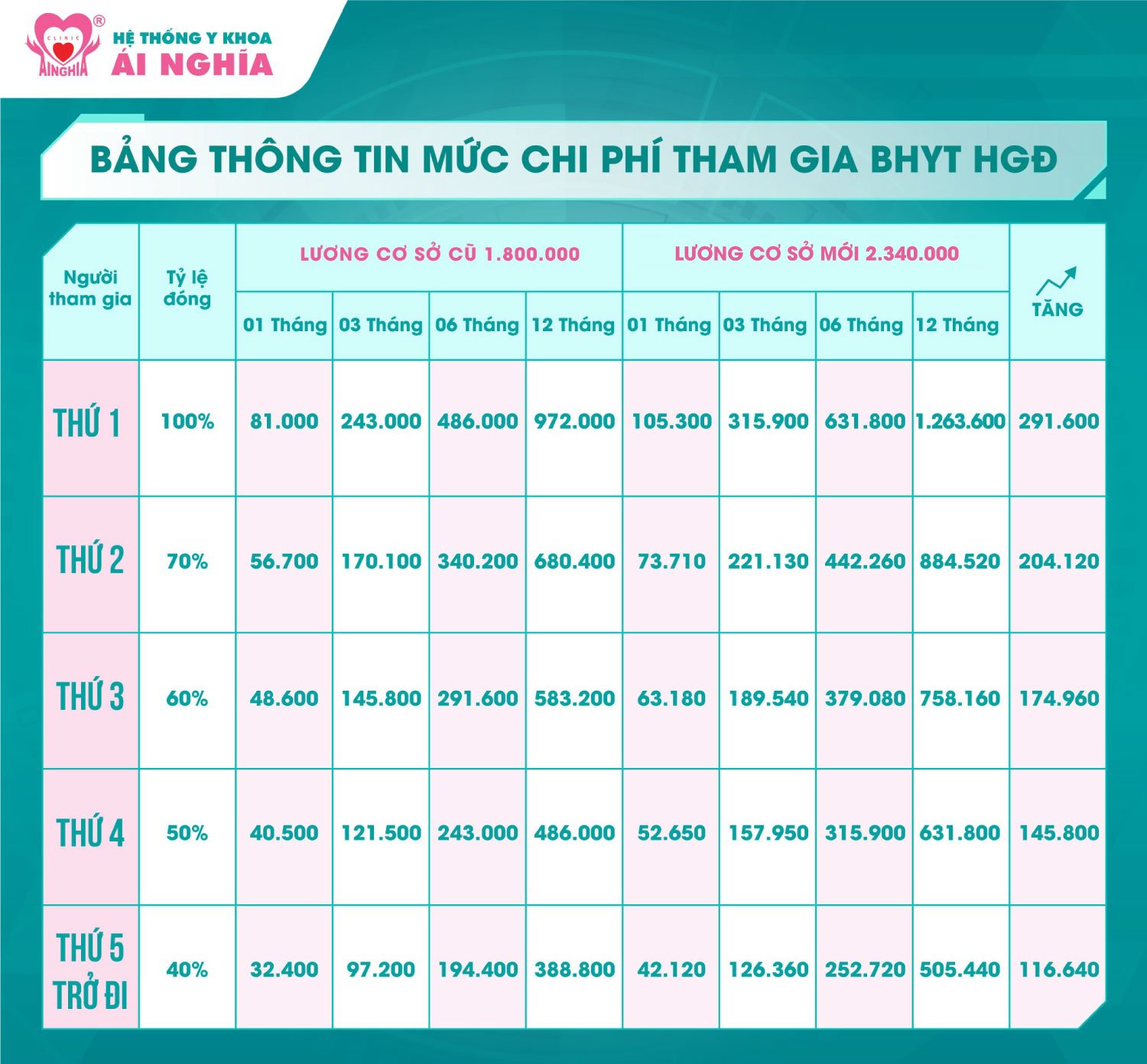 - Mức đóng Bảo hiểm y tế cũng điều chỉnh tăng theo tương ứng: