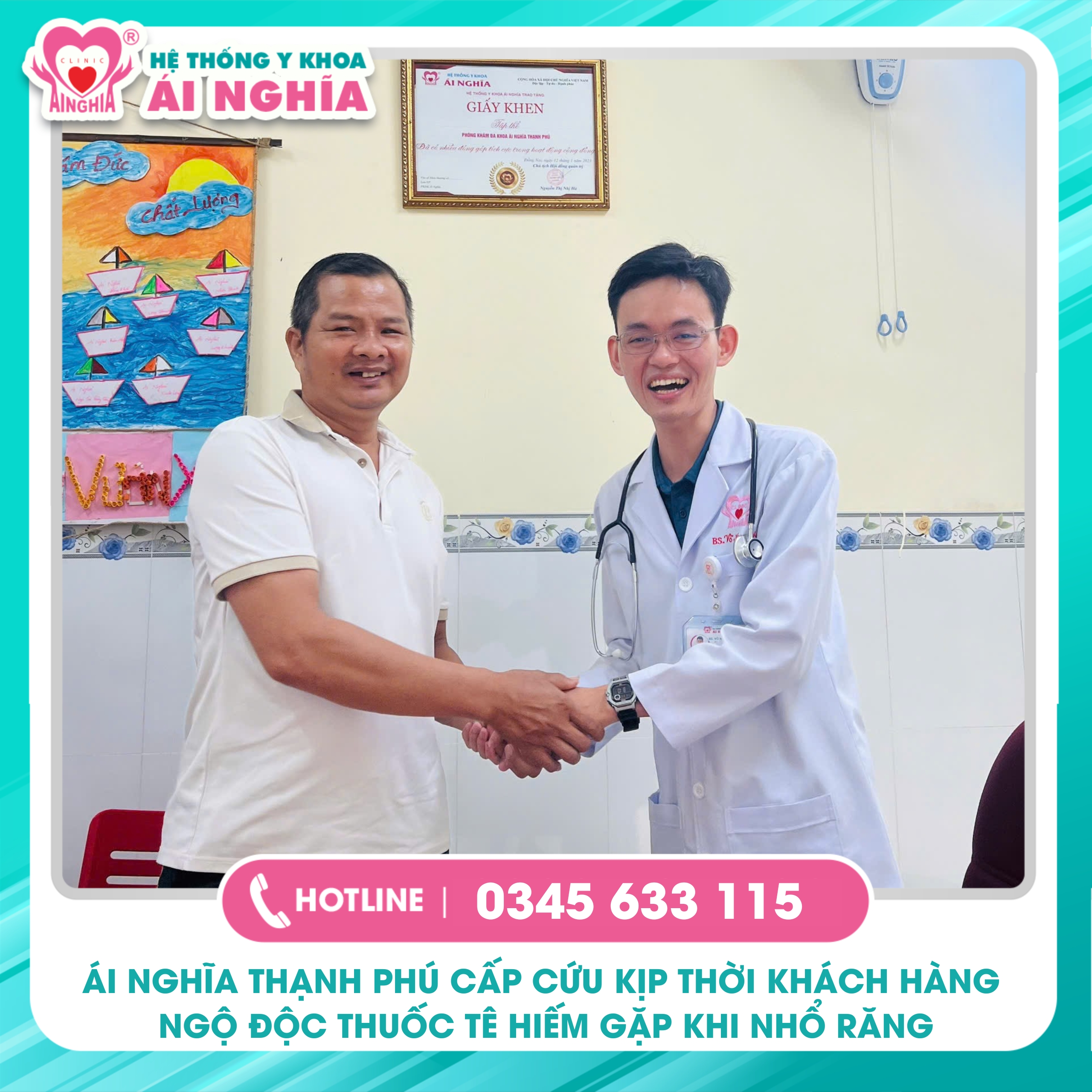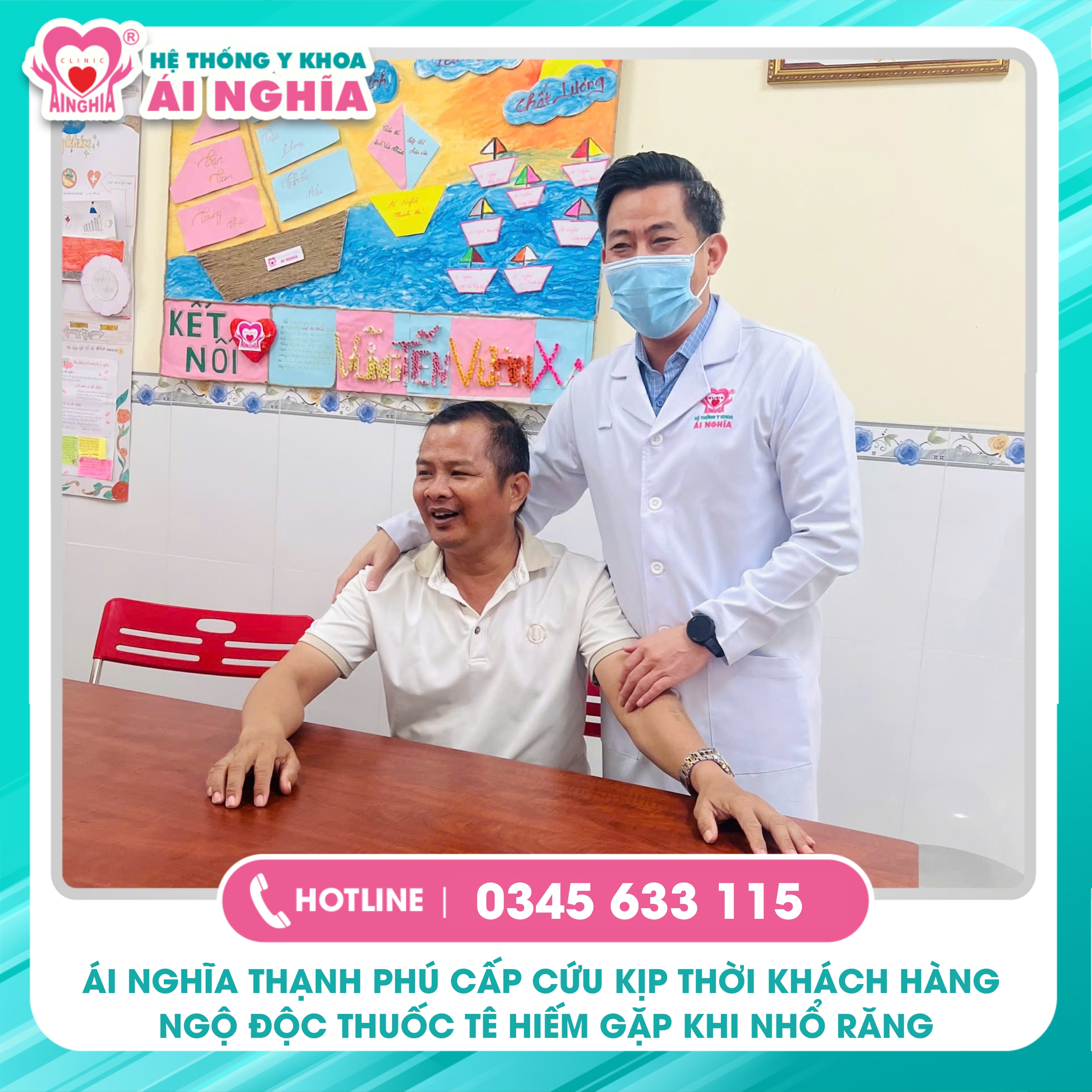Thuốc tê được sử dụng phổ biến tại các cơ sở y tế trong các thủ thuật chuyên khoa như Răng hàm mặt, Sản khoa, Ngoại khoa… Tuy nhiên, ngộ độc thuốc tê hiếm gặp và thường dễ nhầm lẫn sang tình trạng sốc phản vệ, nếu không xử trí đúng có thể gây nguy hiểm cho người bệnh. Vì vậy Hệ thống Y khoa Ái Nghĩa thường xuyên tổ chức đào tạo, tập huấn và hướng dẫn các quy trình chuyên môn định kỳ nhằm nâng cao năng lực xử cấp cứu và nâng cao năng lực khám chữa bệnh. Đặc biệt chuỗi đào tạo nâng cao năng lực cấp cứu do viện nghiên cứu huấn luyện 115 thực hiện giúp đội ngũ nhân viên y tế tại các PKĐK Ái Nghĩa cập nhật kiến thức liên tục, nhanh chóng nhận diện người bệnh, xử trí và cấp cứu hiệu quả đặc biệt các trường hợp hiếm gặp.