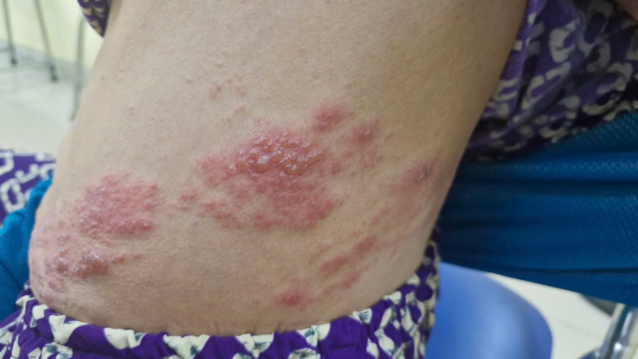 Cô N.V.A (52 tuổi, ngụ Nhơn Trạch, Đồng Nai) phát hiện các vết mụn nước đau rát trên vùng hông lưng. Nghĩ rằng mình bị "giời leo", cô tự mua thuốc tại nhà thuốc và điều trị tại nhà. Sau 3 ngày điều trị, tình trạng không cải thiện, đau nhức dữ dội vì vậy cô quyết định đến PKĐK Ái Nghĩa Nhơn Trạch thăm khám và điều trị.