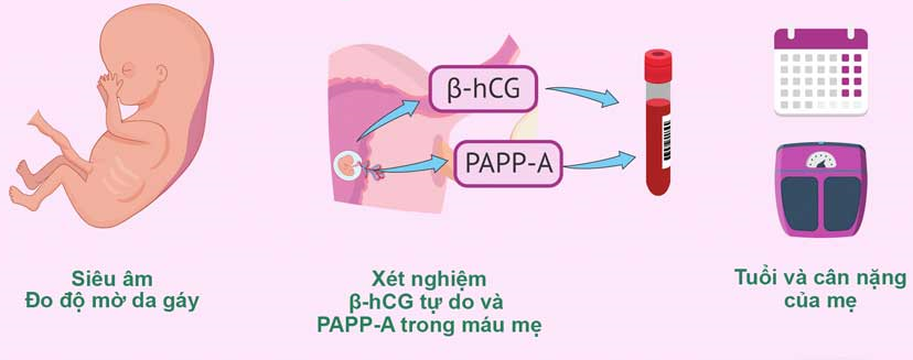 - Chỉ số đo: Đo nồng độ của hai hợp chất trong máu của bà mẹ, bao gồm free β-hCG (beta-human chorionic gonadotropin) và PAPP-A (pregnancy-associated plasma protein A).