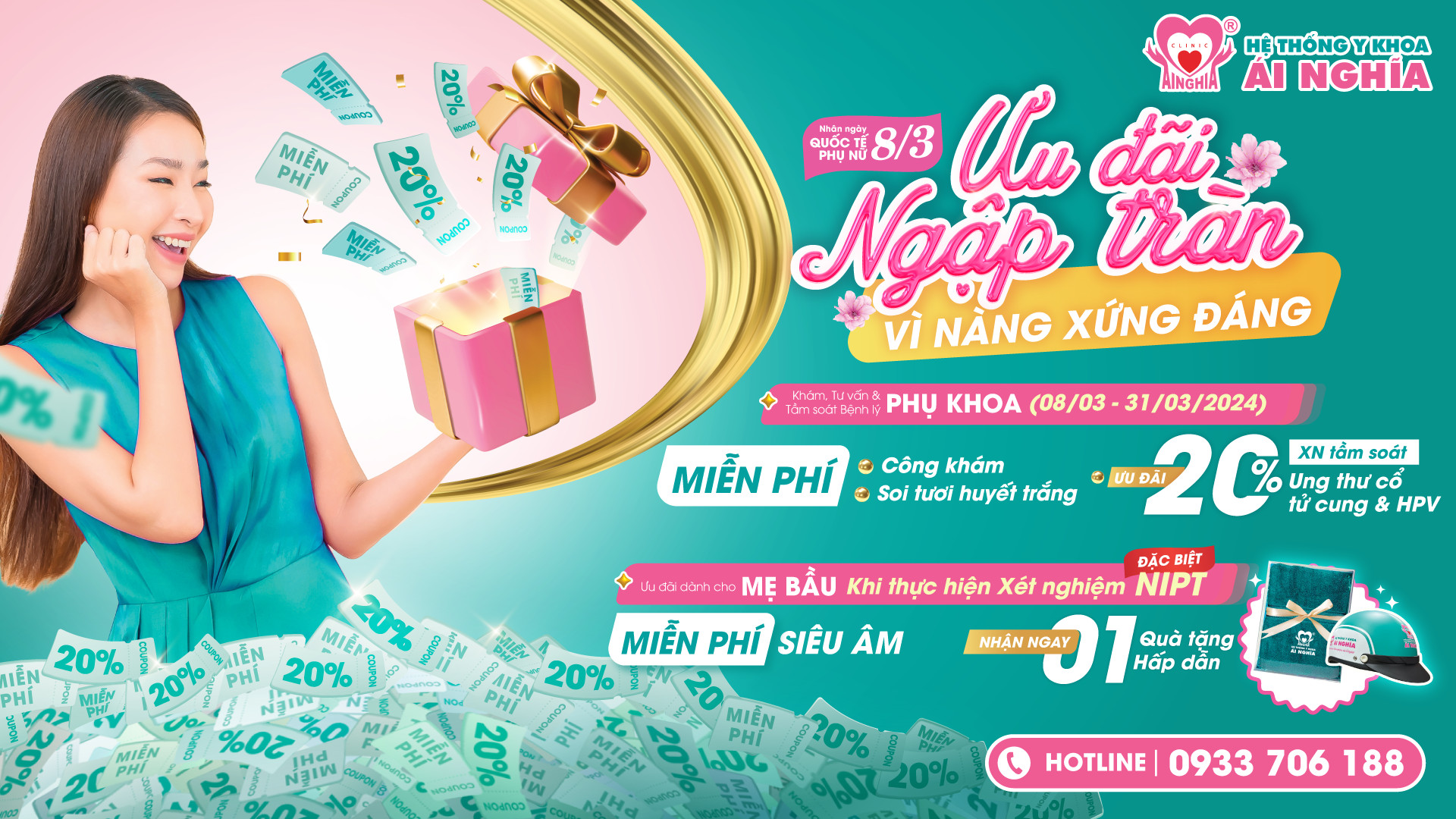 🏥Phòng khám Sản – Phụ khoa xin gửi đến quý khách hàng chương trình “Ưu đãi ngập tràn – Vì Nàng xứng đáng” tại 08 CHI NHÁNH PKĐK ÁI NGHĨA: