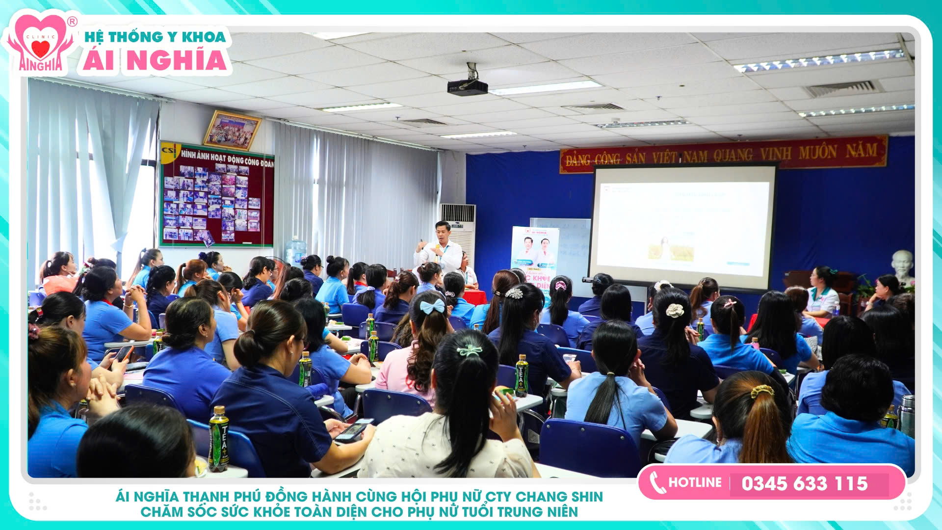 Hệ thống Y khoa Ái Nghĩa xin gửi lời cảm ơn chân thành và sâu sắc nhất đến các chị em lãnh đạo Hội phụ nữ các đơn vị đã phối hợp chặt chẽ của các chị đã góp phần quan trọng vào thành công của chương trình. húng tôi vô cùng trân trọng sự đồng hành của các chị trong việc lan tỏa tinh thần chăm sóc sức khỏe chủ động, không chỉ cho phụ nữ mà còn cho cả cộng đồng.
