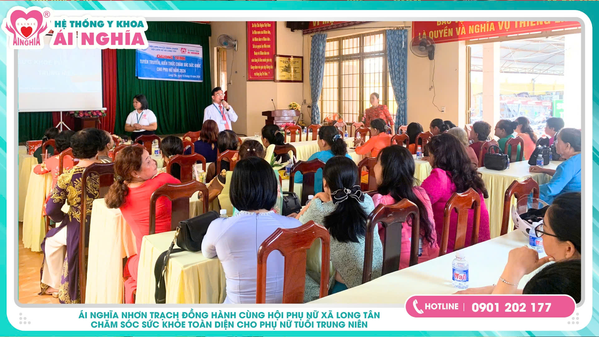 Hưởng ứng 94 năm ngày thành lập Hội liên hiệp phụ nữ Việt Nam, với sứ mệnh chăm sóc sức khỏe cộng đồng; Hệ thống y khoa Ái Nghĩa tự hào đồng hành tư vấn, nâng cao kiến thức, kỹ năng chăm sóc sức khỏe chủ động cho hơn 1.000 hội viên Hội phụ nữ.