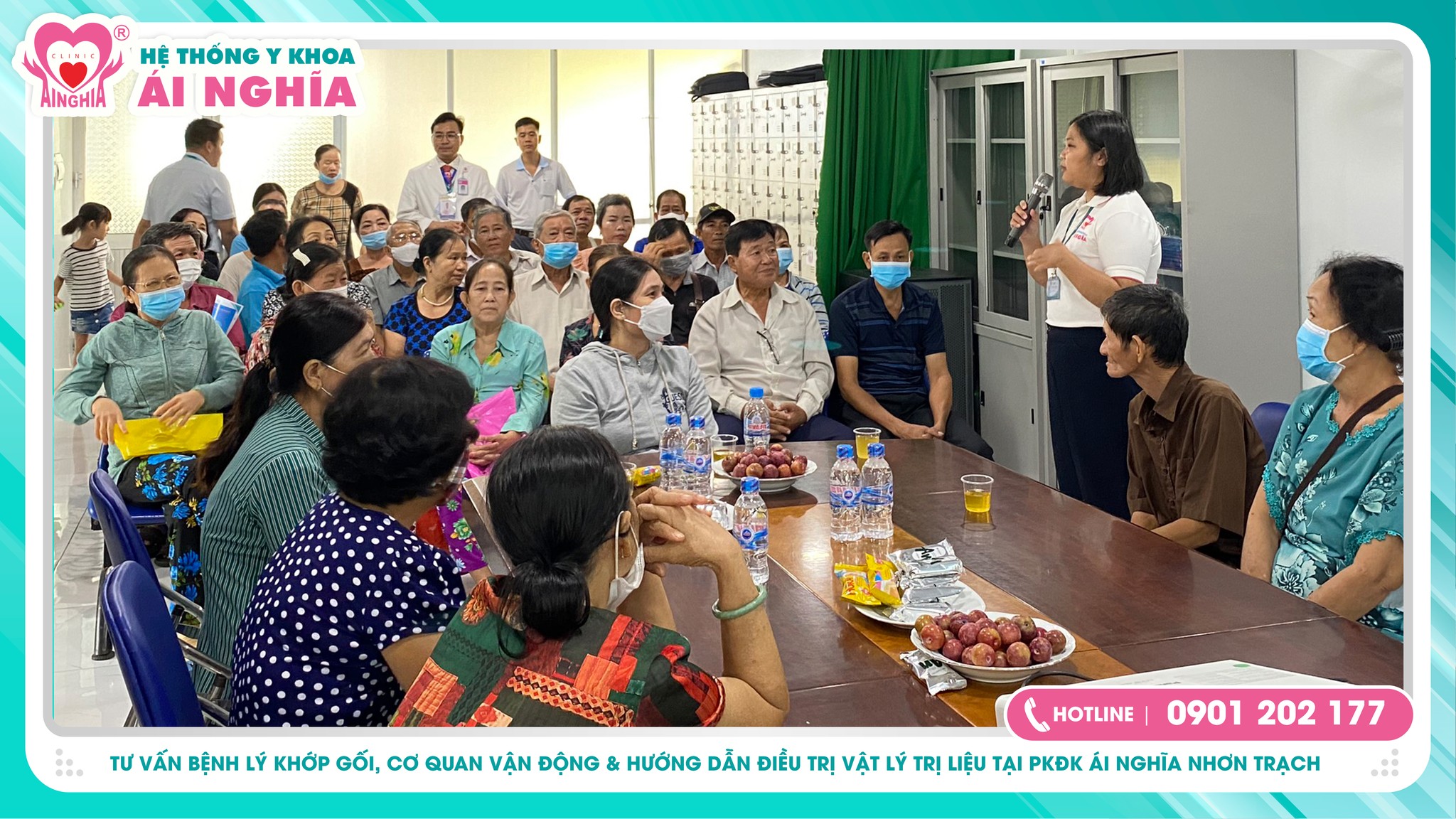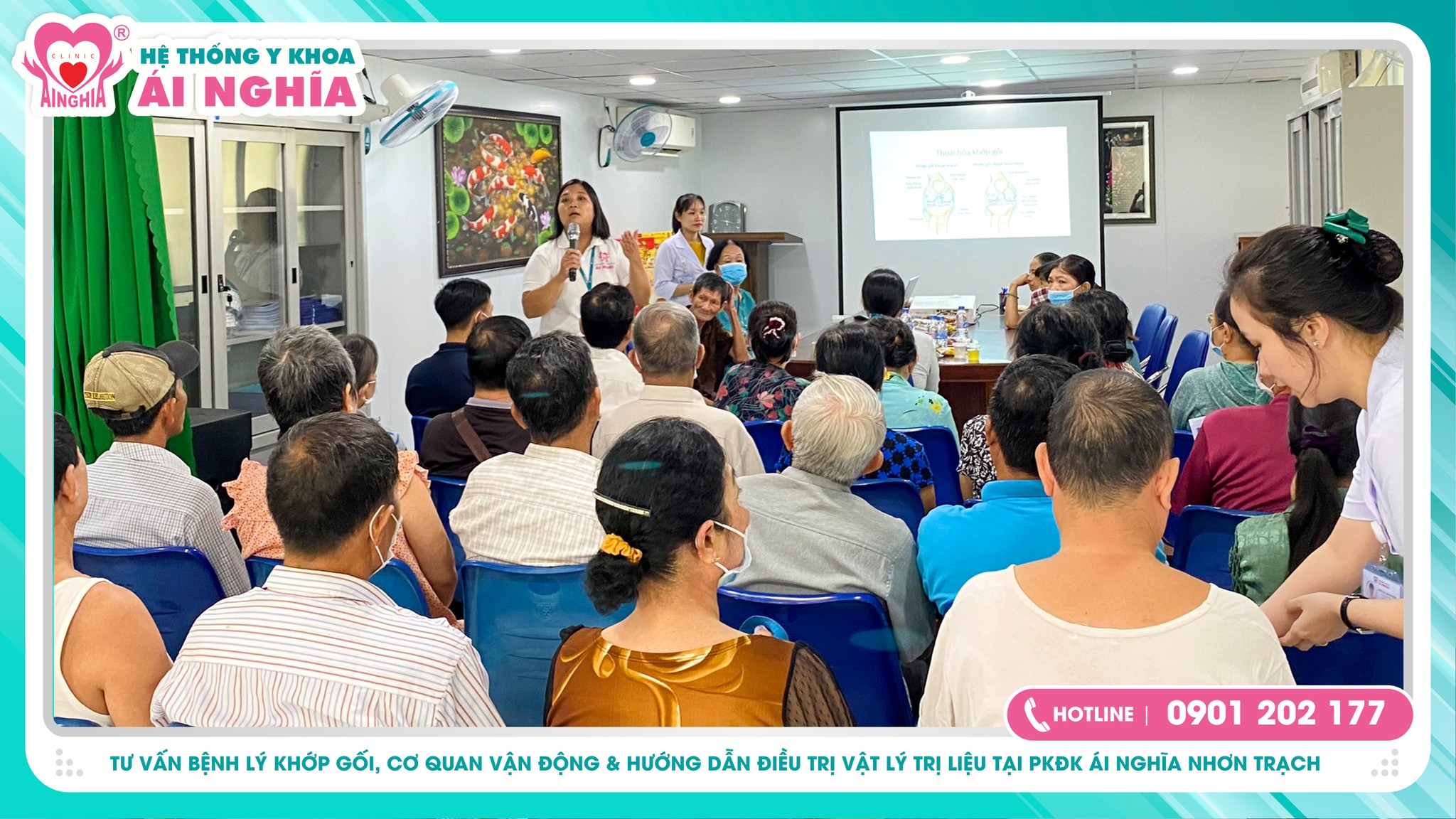 Buổi sáng ngày 26/05/2024 vừa qua tại Phòng khám đa khoa Ái Nghĩa Nhơn Trạch đã diễn ra buổi hội thảo chuyên đề "Tư Vấn Bệnh Lý Khớp Gối, Cơ Quan Vận Động & Hướng Dẫn Điều Trị, Tập Vật Lý Trị Liệu" thu hút hơn 50 khách hàng đến tham dự.
