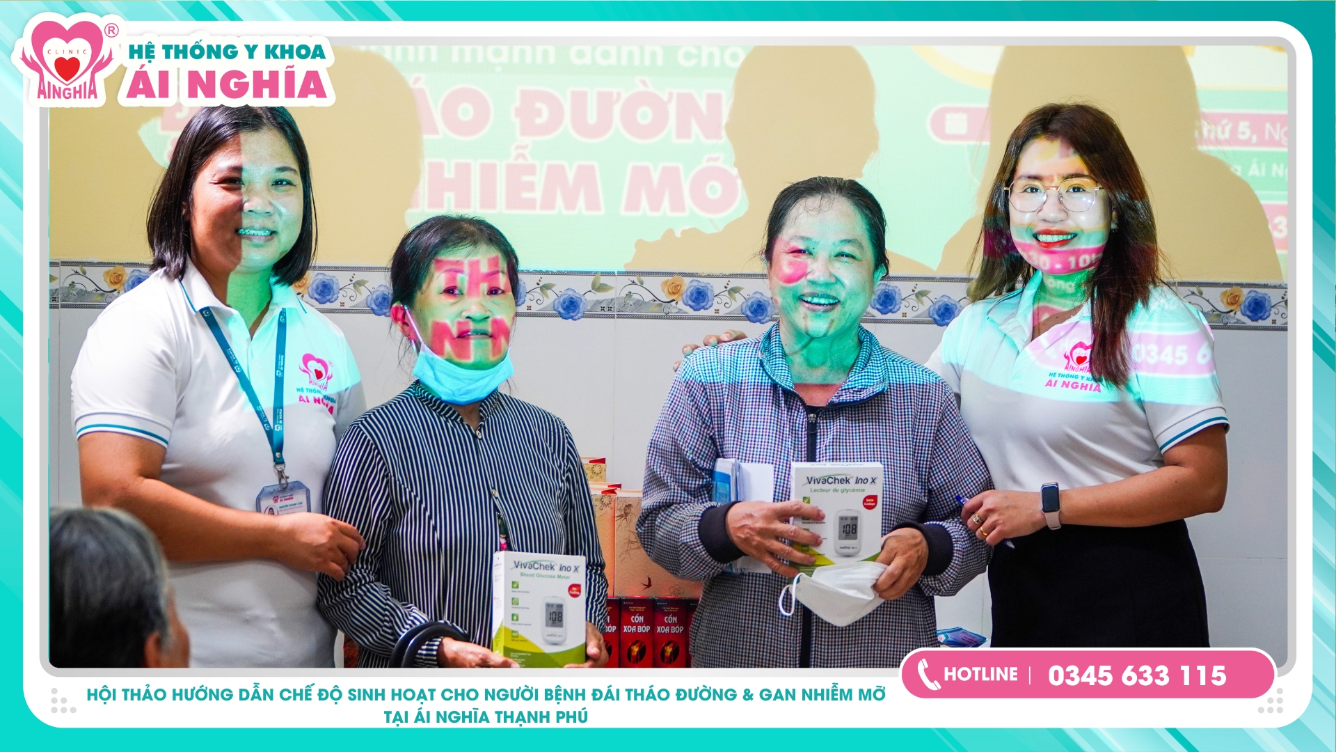 Sáng ngày 25/04, Phòng khám đa khoa Ái Nghĩa Thạnh Phú tổ chức Hội thảo Hướng dẫn chế độ ăn uống sinh hoạt lành mạnh dành cho người bệnh đái tháo đường & gan nhiễm mỡ cho hơn 50 khách hàng tham dự.