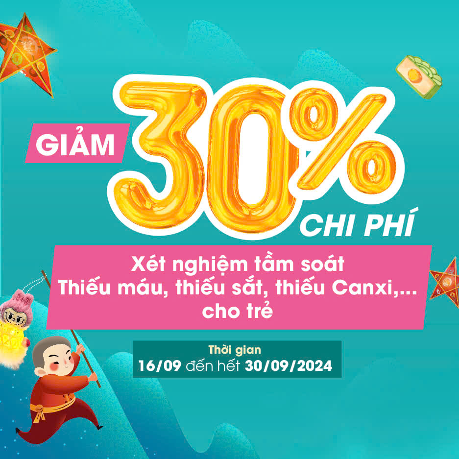 - ƯU ĐÃI 30% Xét nghiệm tầm soát bệnh lý Thiếu máu, Thiếu sắt và kiểm tra ở trẻ từ 17/09 đến hết ngày 30/09.