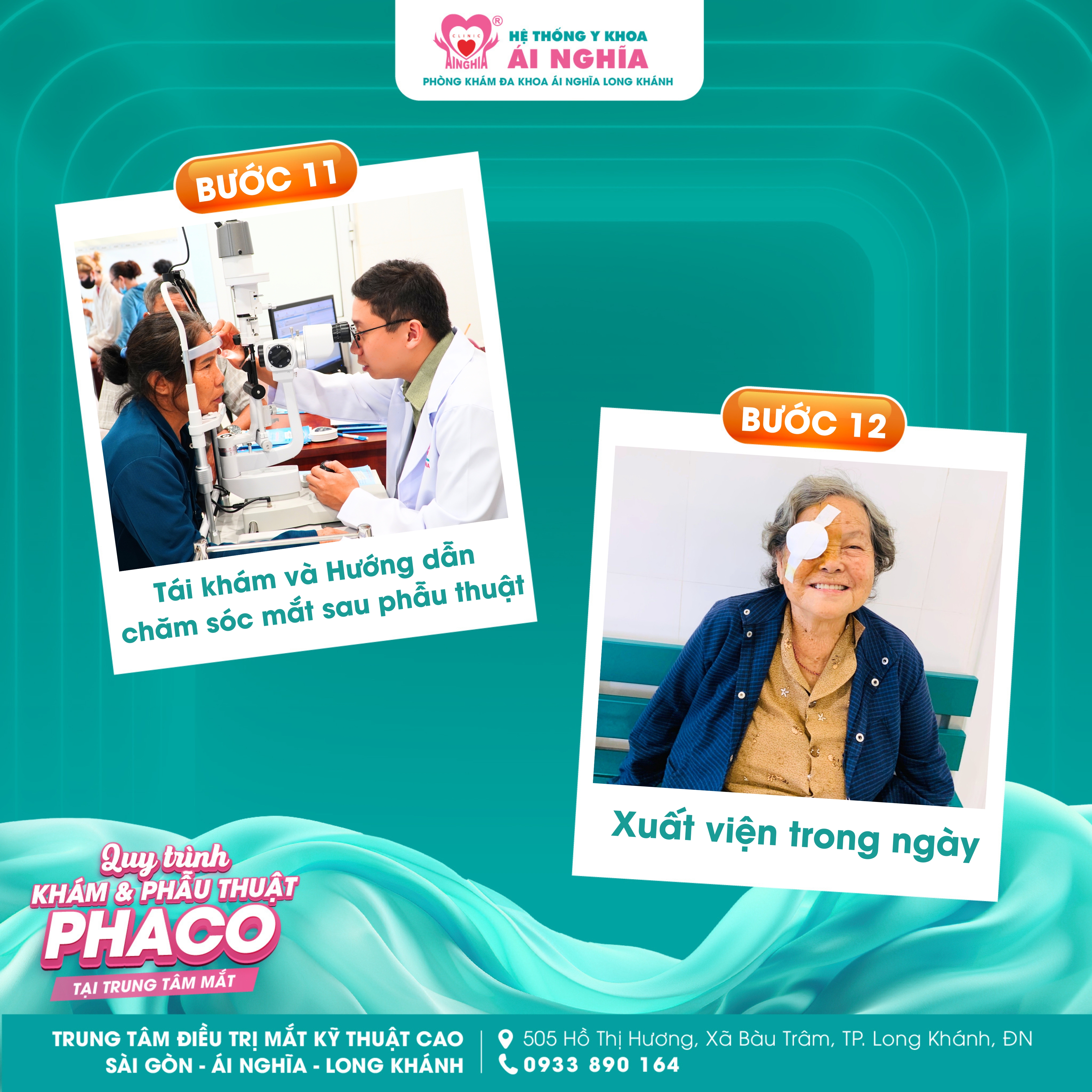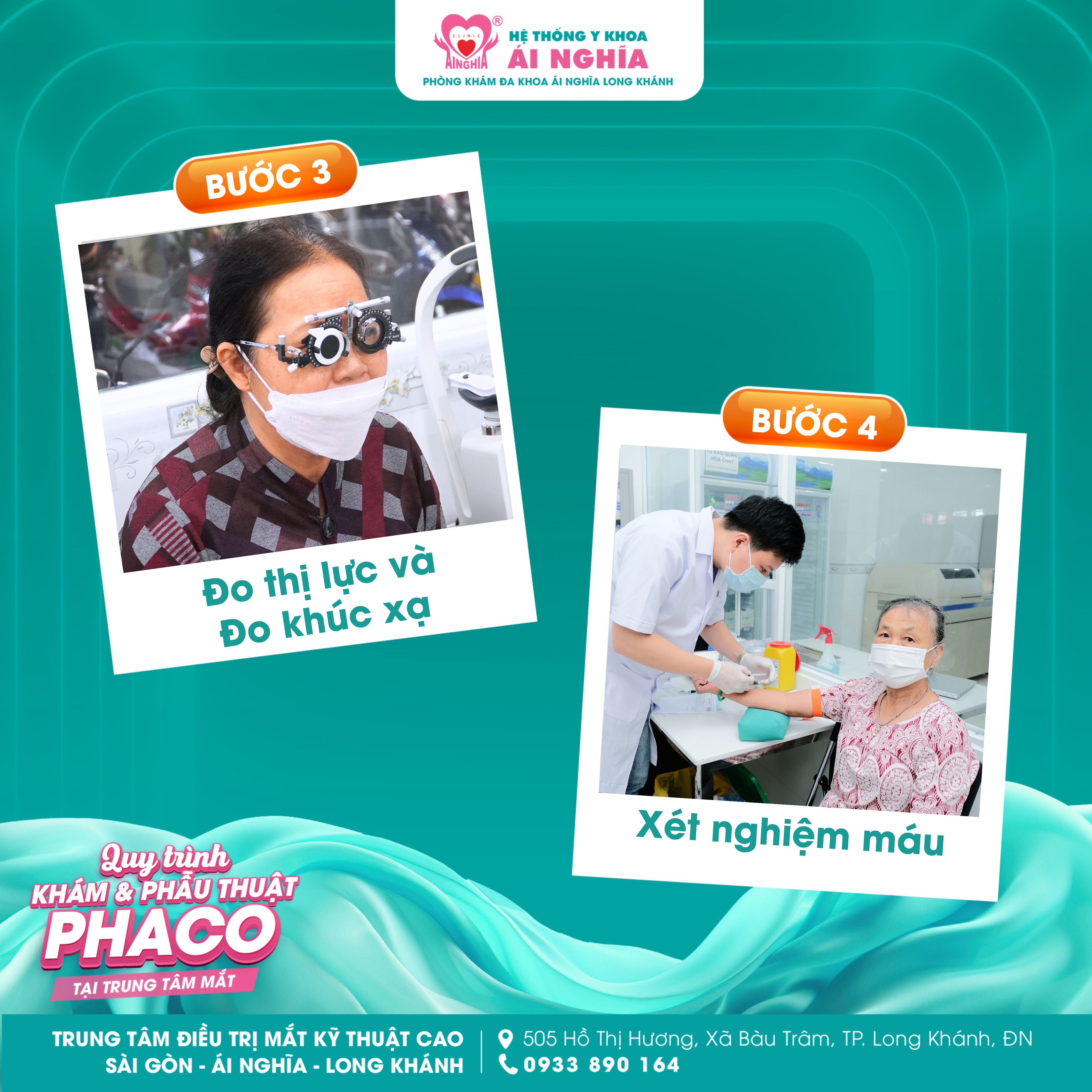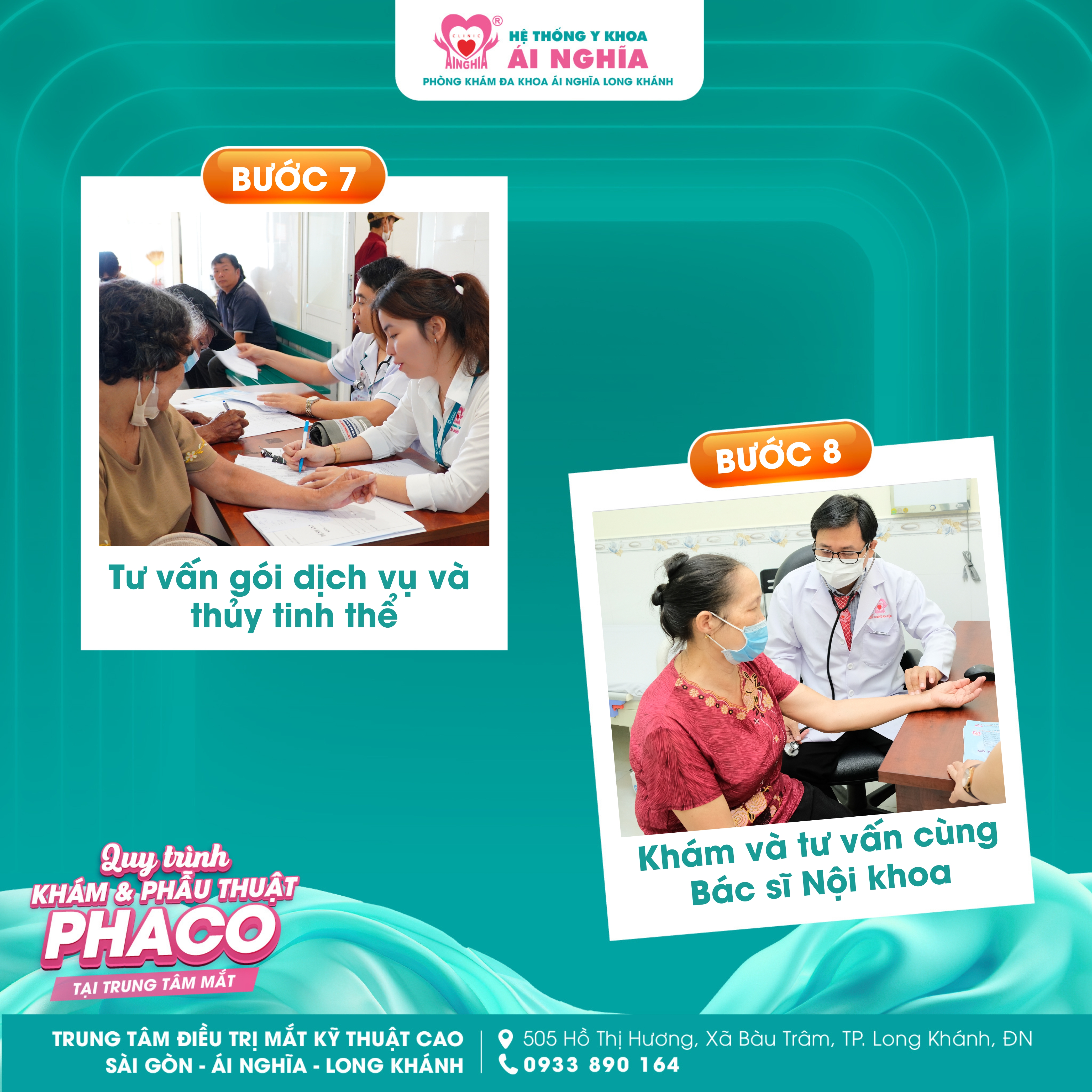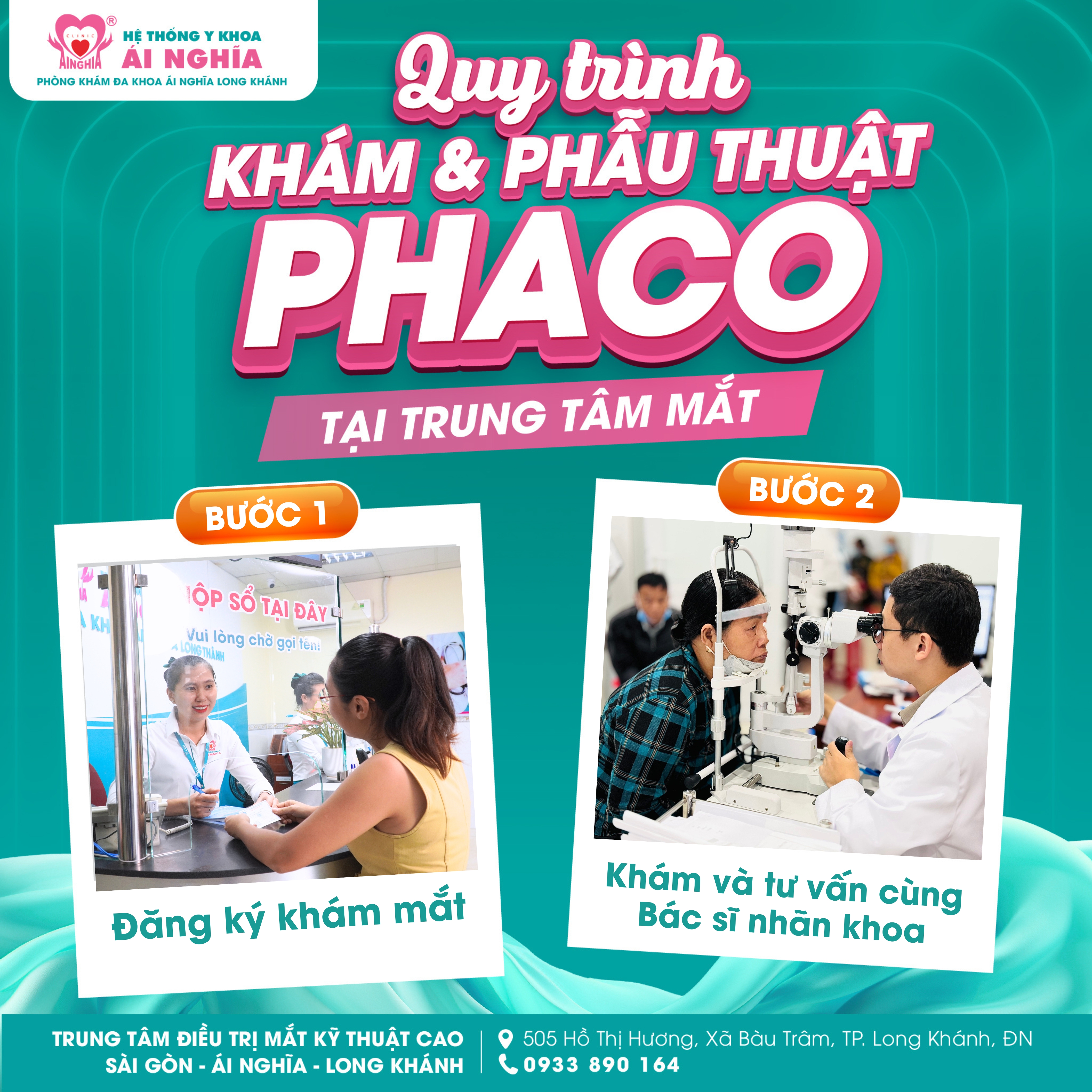 Hãy cùng Trung tâm điều trị Mắt kỹ thuật cao Sài Gòn - Ái Nghĩa Long Khánh tìm hiểu quy trình Khám và Phẫu thuật Phaco tại trung tâm:
